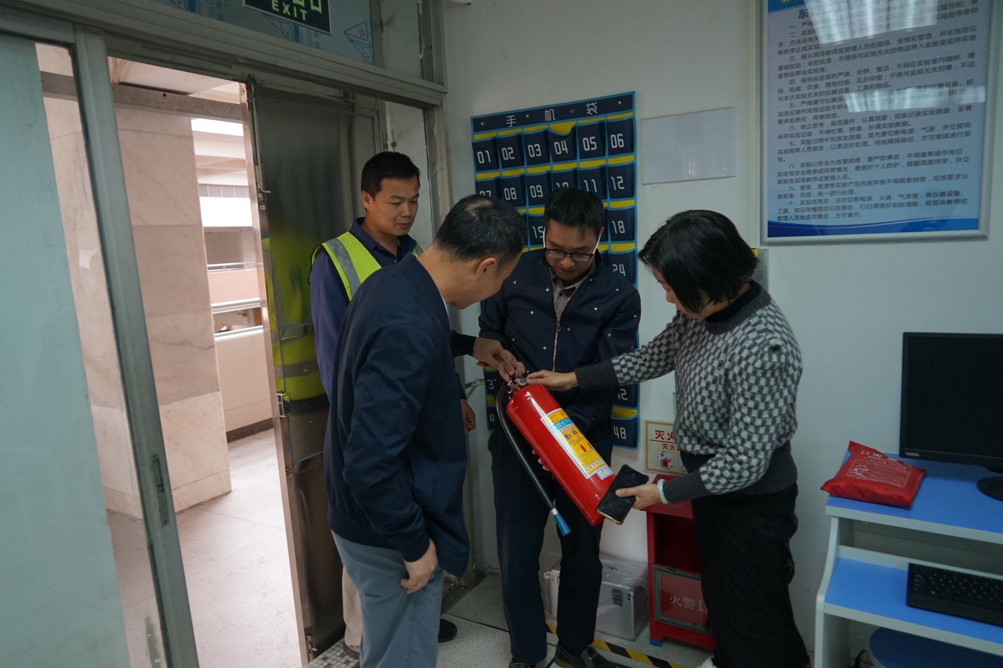 在松山湖校区,安全保卫部、学工部、总务后勤部、宣传部、研究生院及新大正物业中心相关负责人组成专项检查组,于行政楼电子屏幕前集中集结后,按照既定路线有序开展全方位排查。检查组重点聚焦综合实验楼,细致核查实验室安全管理制度落实情况及设备运行规范程度;针对危险化学品仓库,严格核验周边环境安全、日常管理流程及存储规范等核心环节,筑牢特殊场所安全屏障。同时,对学生宿舍、国际合作创新区、后勤楼、食堂、快递点等人员密集区域,检查组以疏散通道畅通情况、应急照明与疏散指示标志完好度为核心,现场测试灭火器压力值,核查消火栓阀门开关、出水压力及管网连接状态,确保各类消防设施随时处于可用状态。
