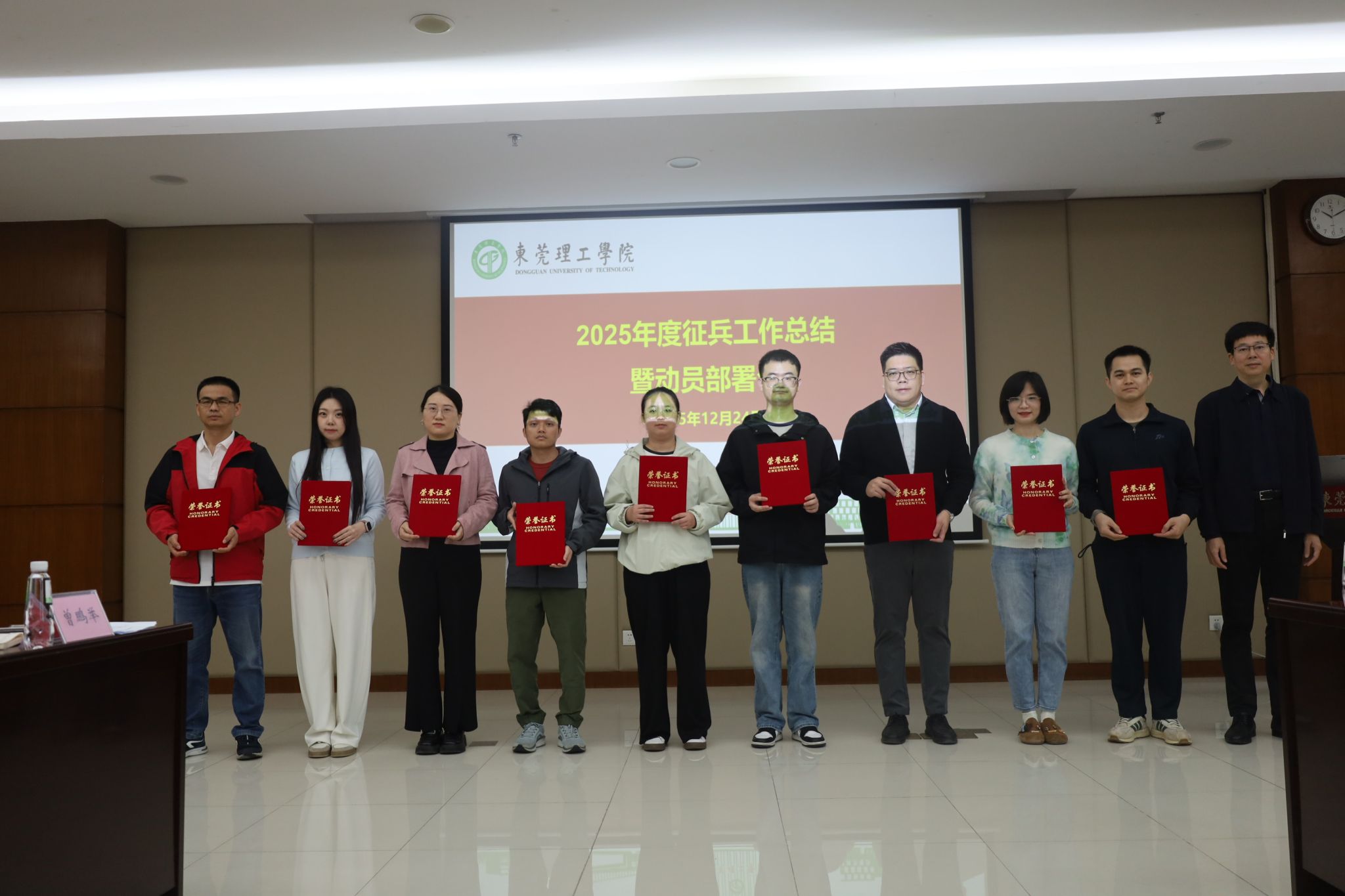 为深入贯彻落实党中央、国务院、中央军委关于新时代征兵工作的决策部署,积极响应国家号召,服务国防和军队现代化建设,扎实推进征兵工作。12月24日上午,我校在学术会议中心召开征兵工作总结暨动员部署会,校党委委员、副校长胡钦华,武装部部长、副部长,学生工作部、教务部、团委负责人,各学院党组织负责人、征兵工作辅导员等共计40余人参加了会议,会议由武装部副部长江志东主持。