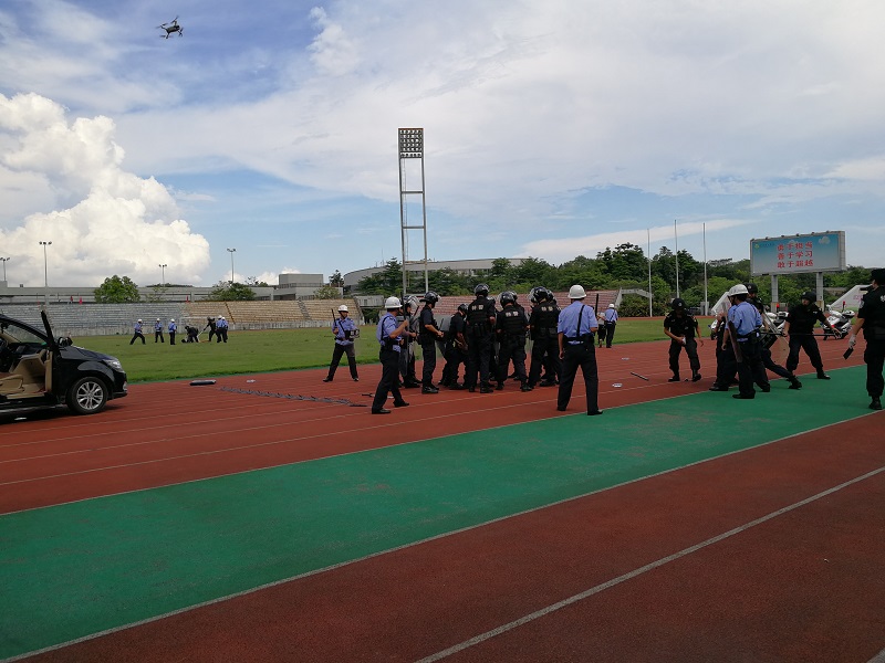 6月28日,我校开展2019年联合防暴演练暨校卫队岗位技能竞赛。活动由安保处、校工会主办,学校党委委员、副校长杨敏林,松山湖公安分局副局长姚锦堂、巡警大队大队长卢松发、红棉派出所所长李容根,学校宣传部、安全保卫处、工会等职能部门相关领导参加了活动。